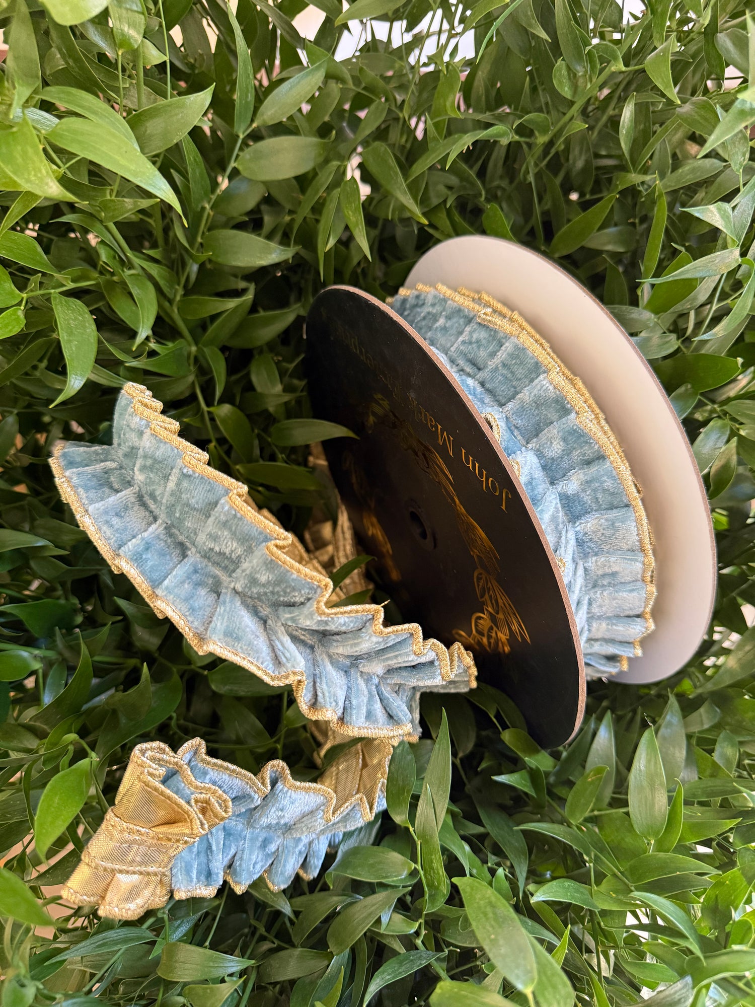 JME heavy wired ribbon. AQUA Velvet Pleating with Gold Metallic Back 2"x 10YDS