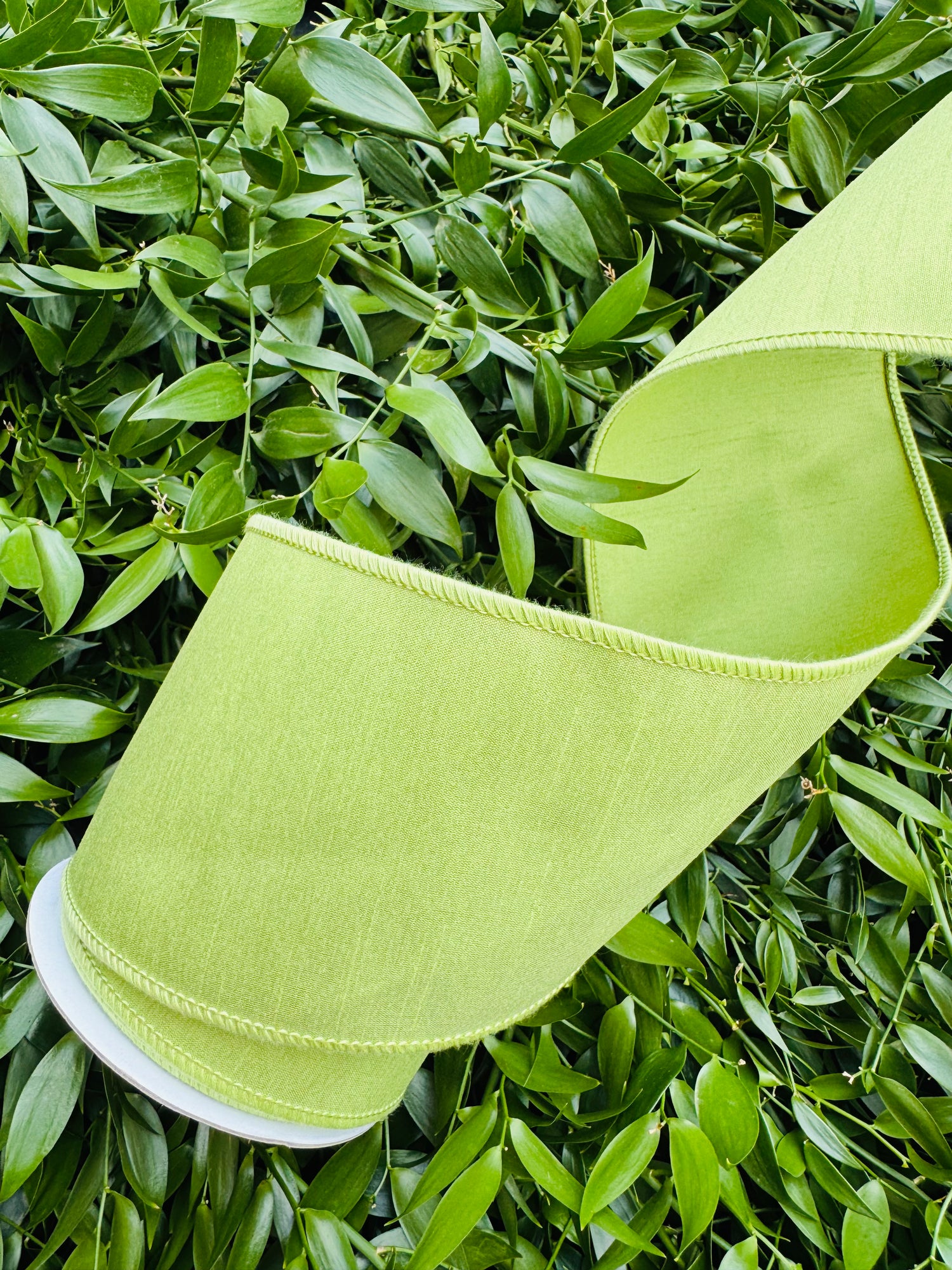 JME heavy wired ribbon. LIME Dupion 4"x 10YDS