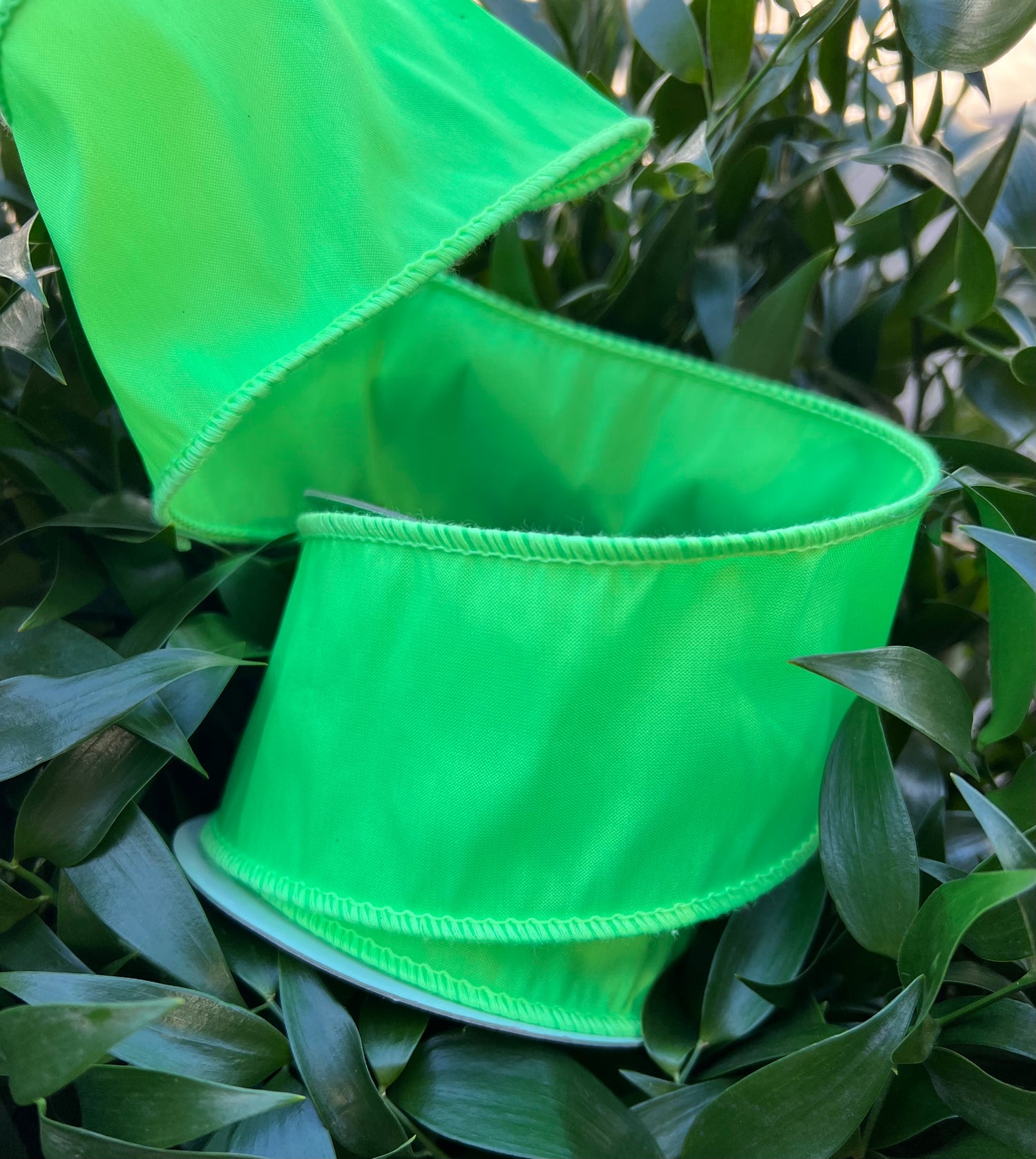 JME heavy wired ribbon. NEON GREEN Taffeta 2.5"x 10YDS