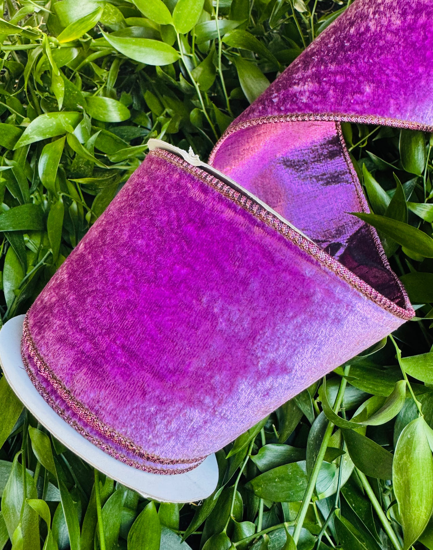JME heavy wired ribbon. Purple velvet with Purple metallic back 4" x 10 yards