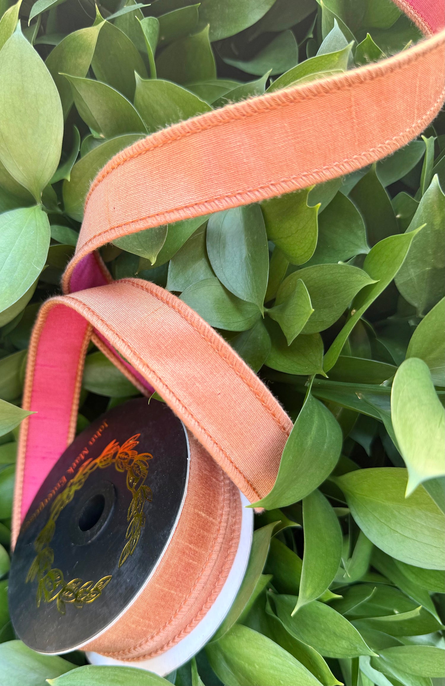 JME heavy wired ribbon. PEACH/PINK Two-Tone Solid