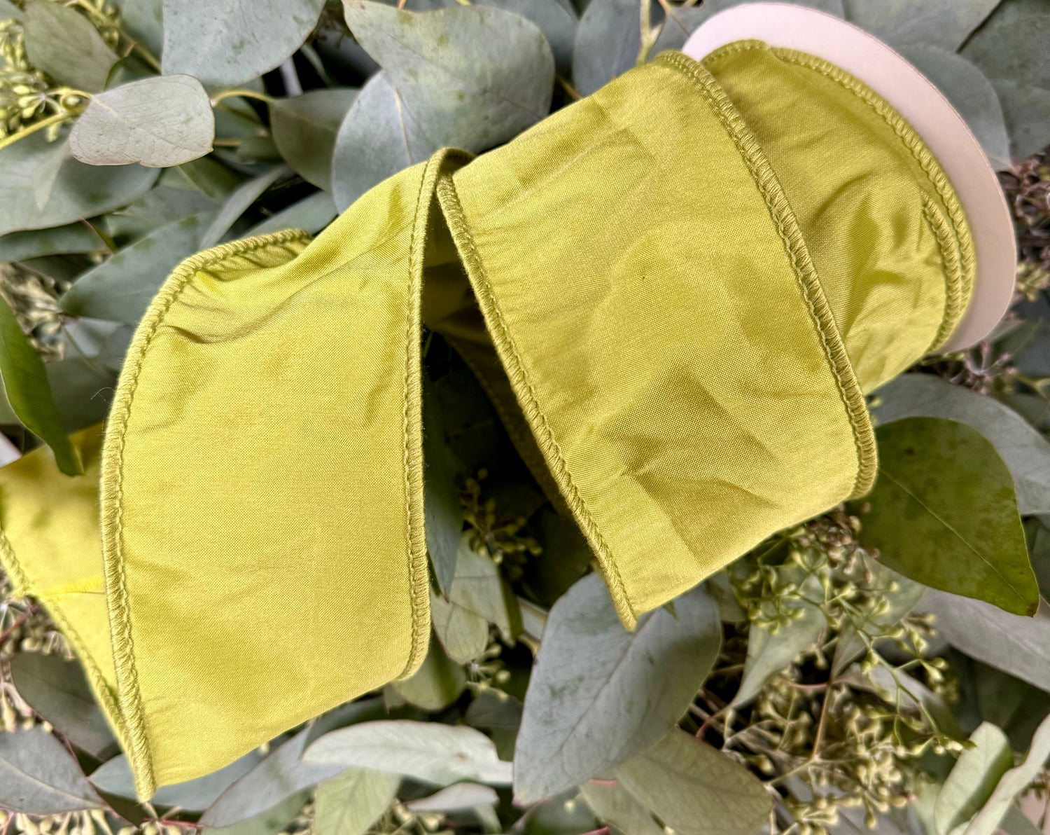 JME heavy wired ribbon. Moss green taffeta heavy wired ribbon. 2.5inch by 10 yards.