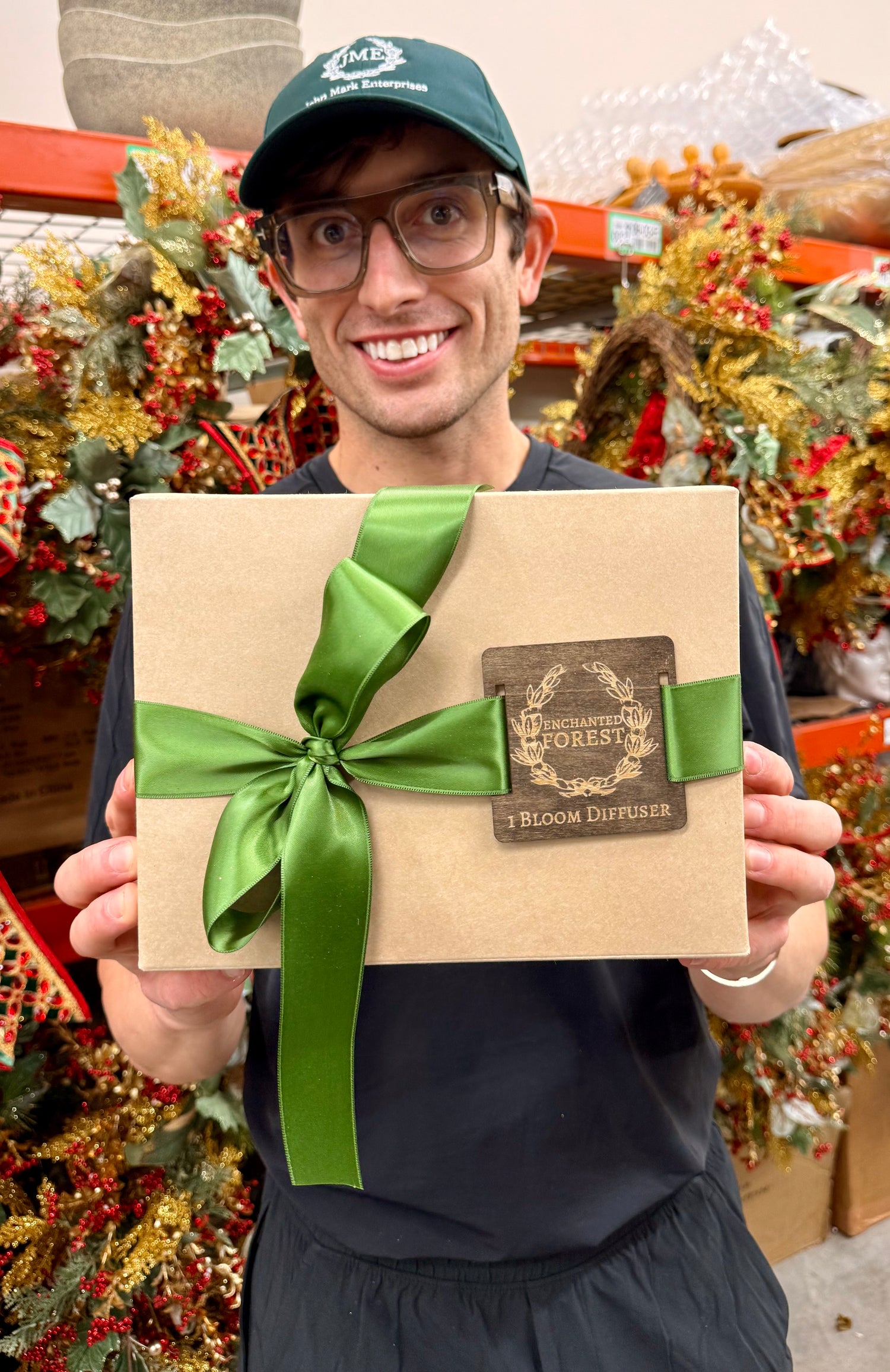 Paper flower oil diffuser with glass bubble vase. SINGLE BLOOM. “Enchanted Forest" scent.