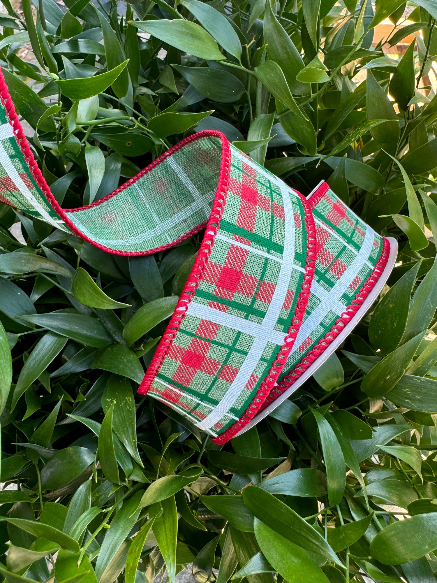 Red/Green/White on Green Plaid Wired Ribbon 1.5"x 10YDS