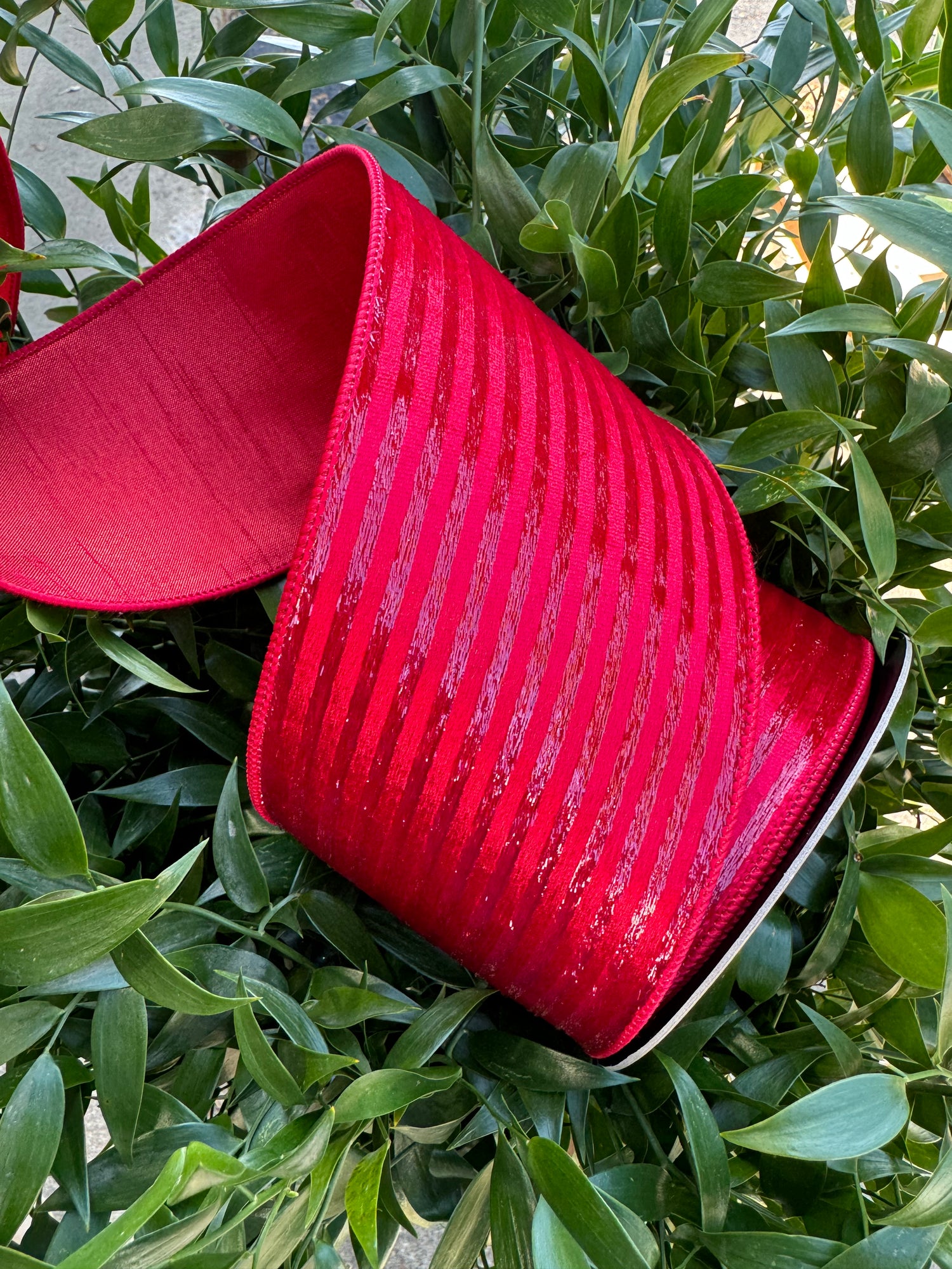 Red Velvet with Metallic Red Horizontal Stripes Wired Ribbon 4"x 10YDS