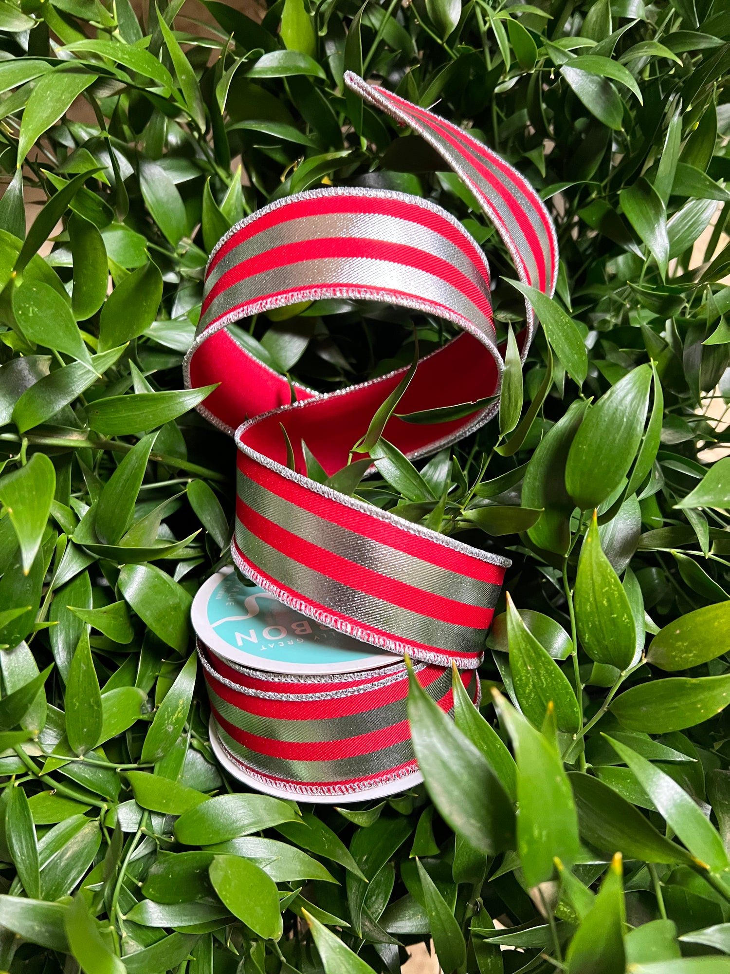 Red with Metallic Silver Horizontal Stripes Wired Ribbon 1.5"x 10YDS