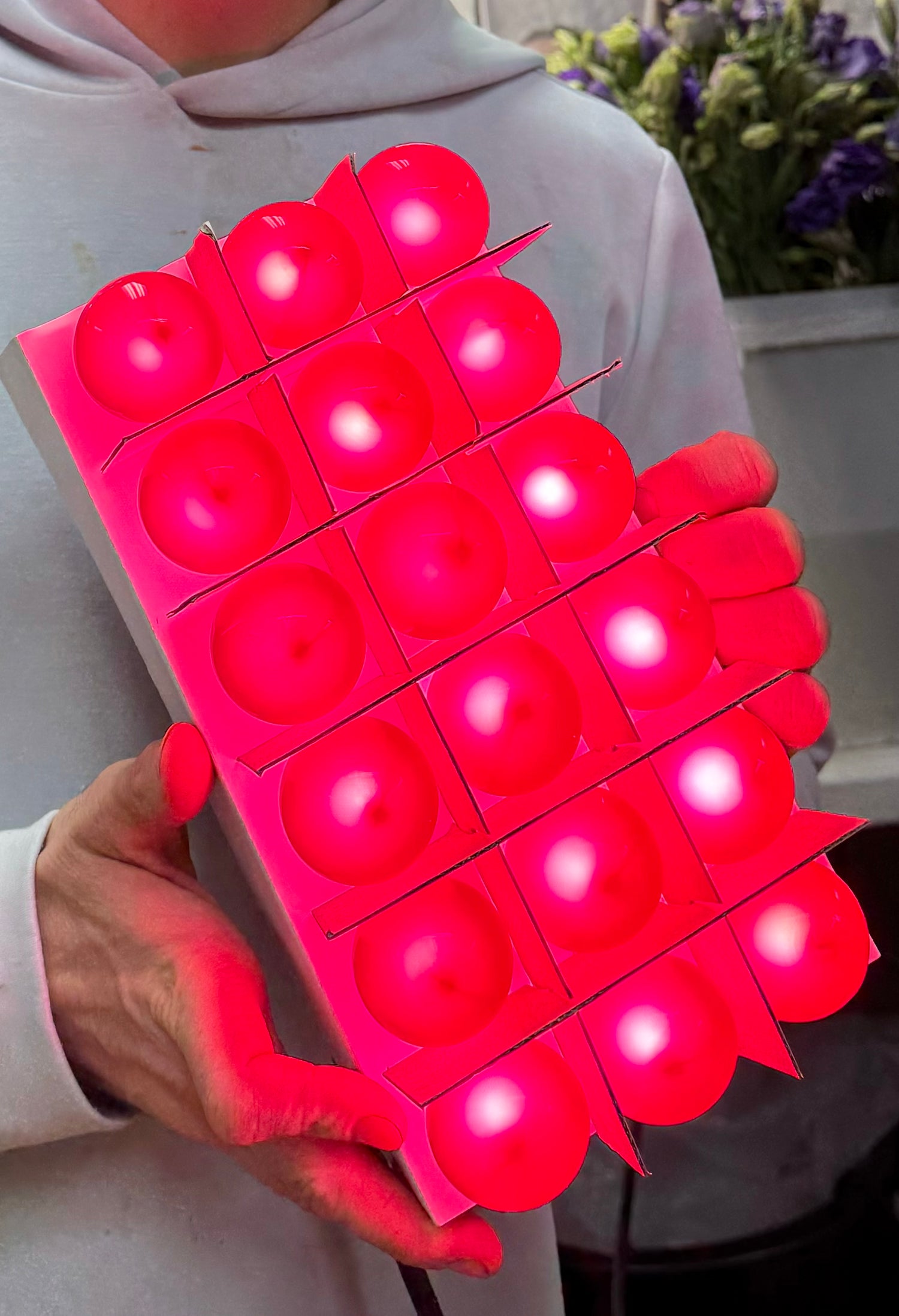 Vintage inspired ROUND bulb lights. HOT PINK. Glass bulbs, 18 lights per strand can connect up to 19 strands into end. LEDG4 light bulb set. 15 feet in length and lights are spaced out every 10 inches.