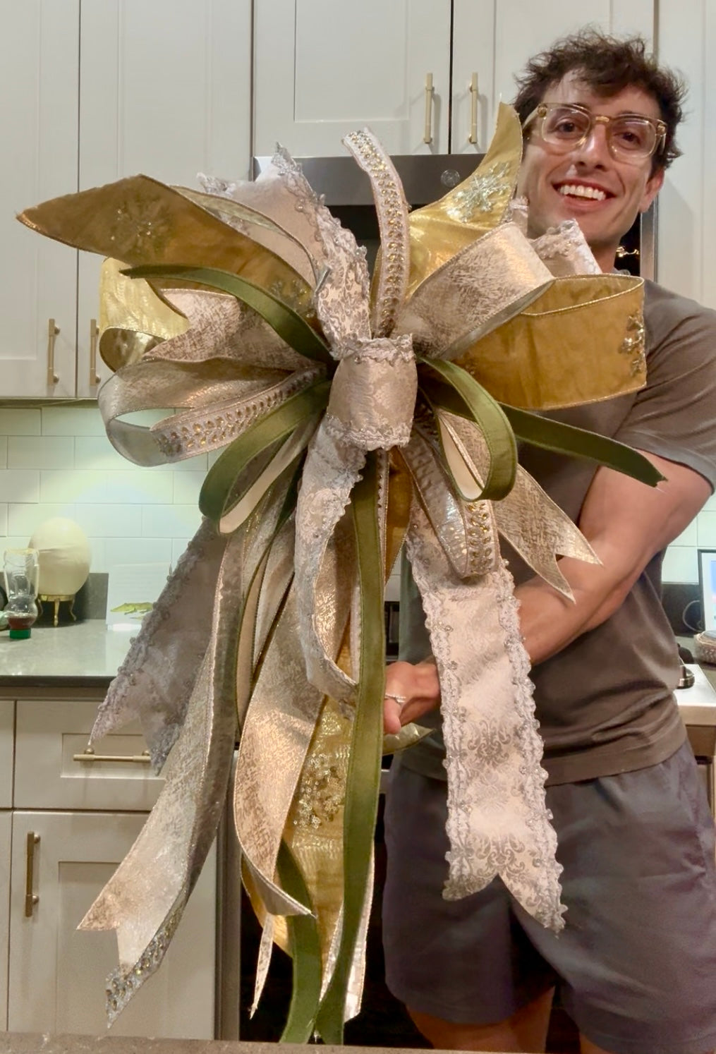 Winter regal bow. Hand tied by JME using all JME ribbons.